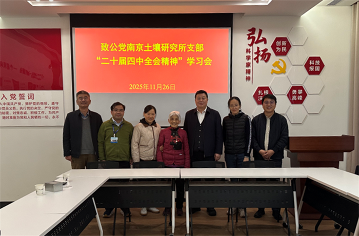 研讨环节气氛热烈。大家一致表示,中共二十届四中全会精神为下一阶段工作提供了根本遵循。面向国家“双碳”战略与“土壤健康”重大需求,支部将充分发挥民主党派智力密集优势,聚焦土壤环境保护、耕地质量提升、污染地块绿色修复等议题,形成一批高质量调研成果,为以中国式现代化全面推进中华民族伟大复兴,贡献致公智慧与土壤所力量。(致公党中国科学院南京土壤研究所支部供稿)
