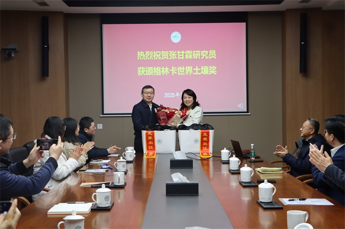 随后,张甘霖发言致谢研究所的厚爱与重视。他表示:“团队成长的每一步都离不开研究所的支持,科研人员个人每一点成绩的取得更离不开团队。”发言中,他深情回顾了获奖相关的科研历程,阐释了该奖项在国际土壤学领域的重要意义,分享了自己在土壤分类、调查制图、资源评价等领域的开创性成果,以及长期推动全球土壤数据共享、助力可持续土壤管理的实践探索。他还结合数十年科研经历,从“坚持”“态度”“创新”“素养”等方面分享心得,殷切寄语与会同仁及后辈:要不忘初心、守正创新,瞄准国际学术前沿与研究趋势深耕细作;要锤炼科学素养,将服务国家需求与攻克科研难题紧密结合,为科技创新突破、社会发展进步贡献更大力量。